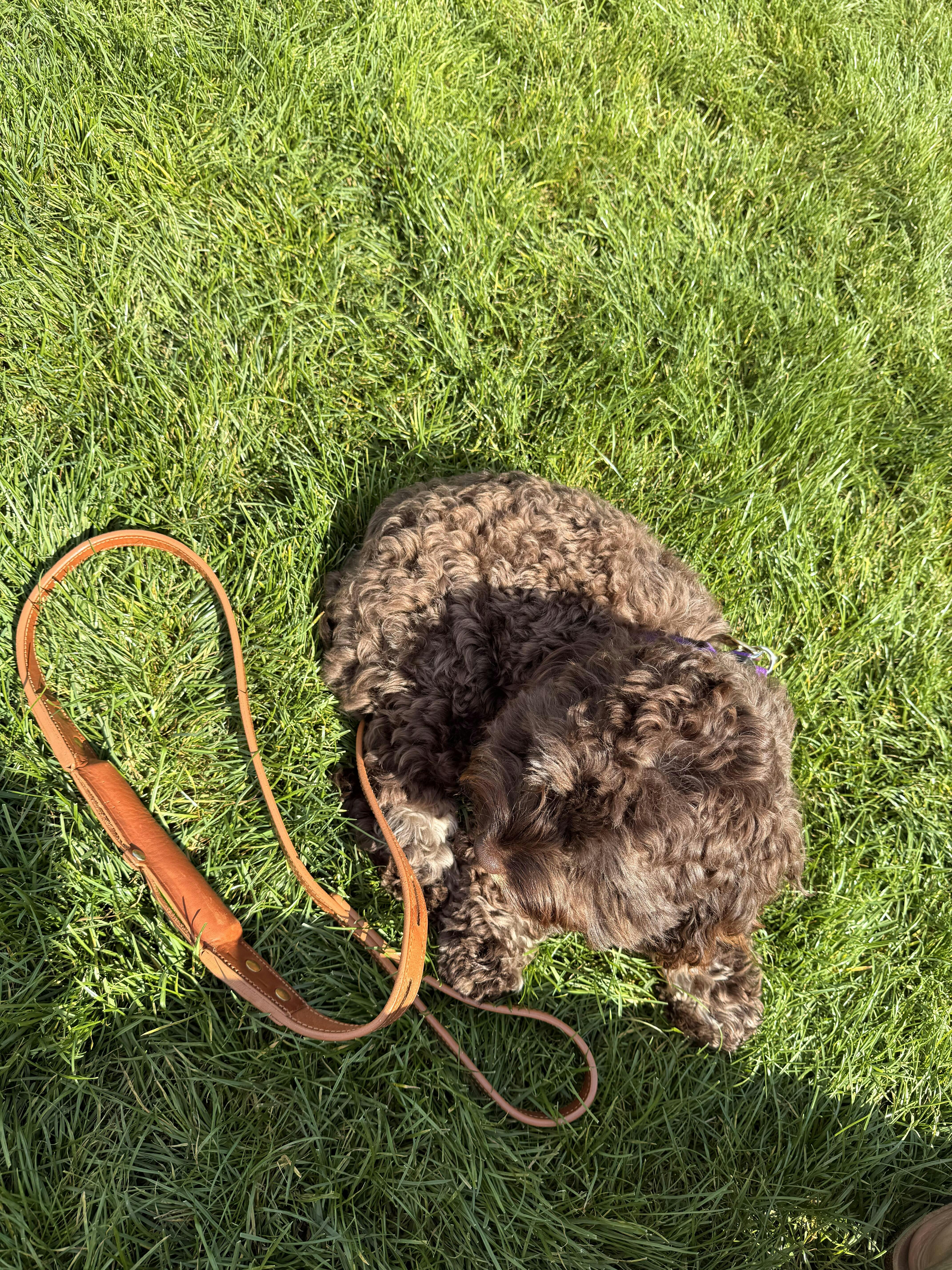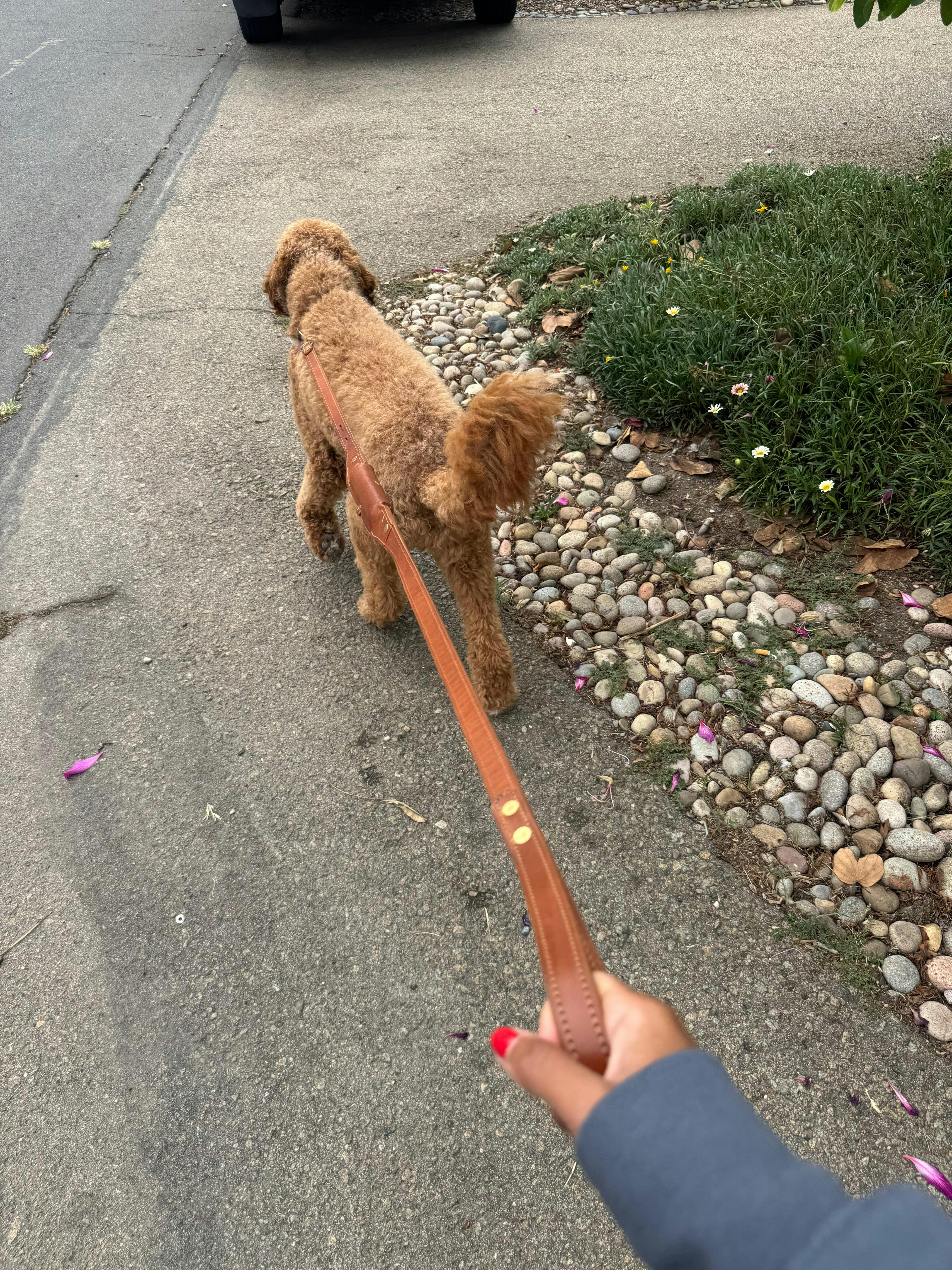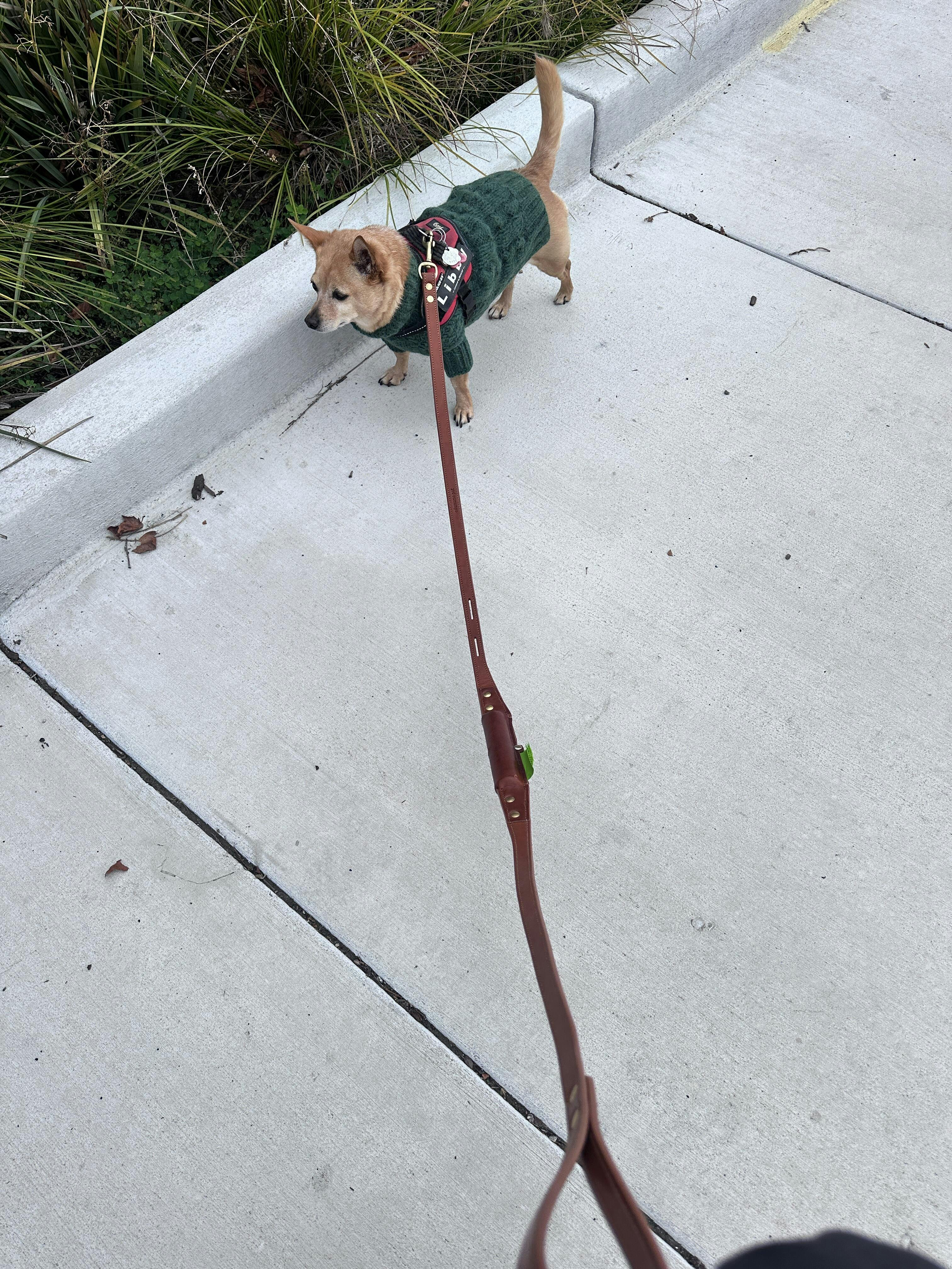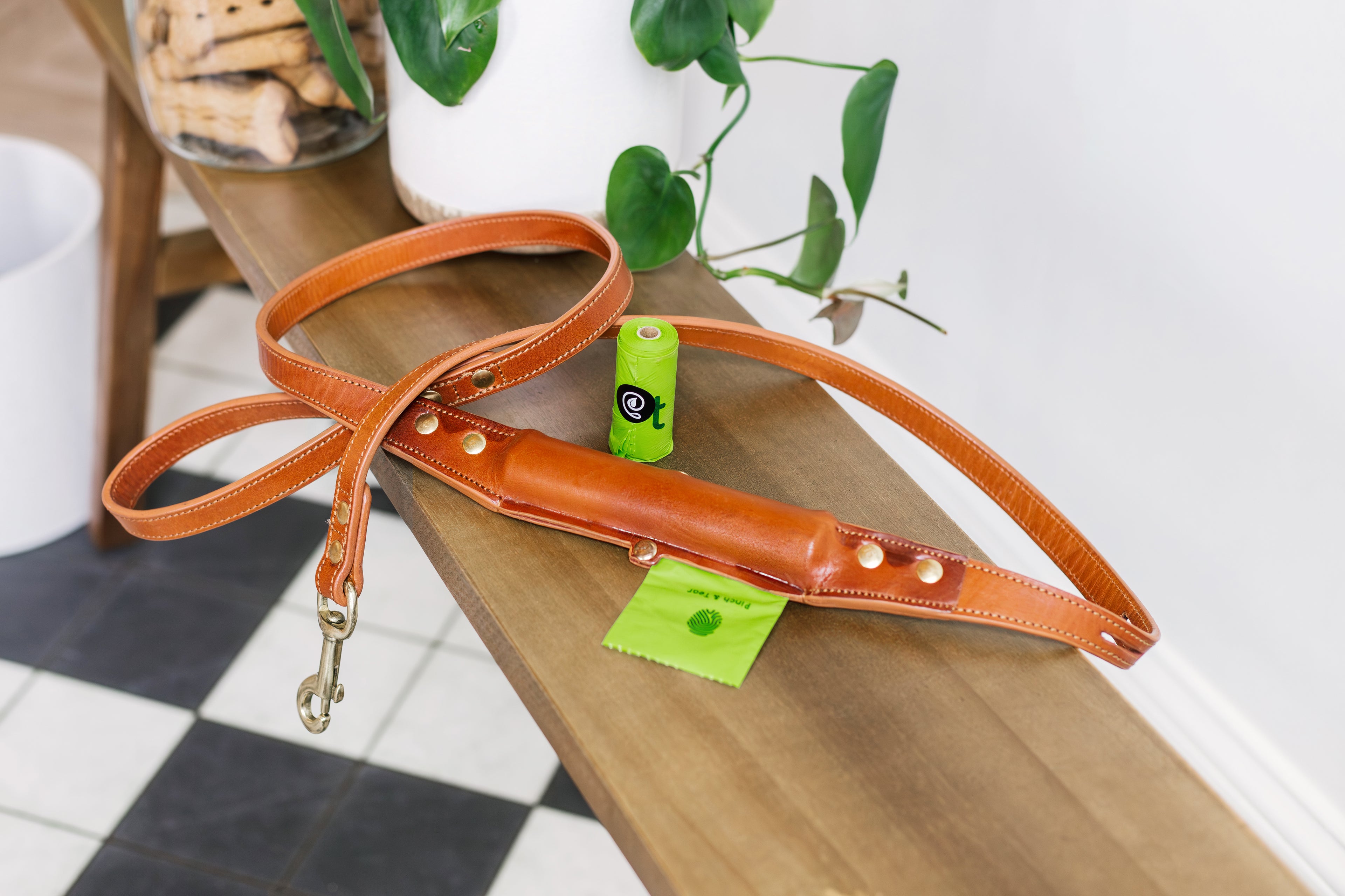 Each leash is handmade in small batches from full-grain leather and brass hardware — built to last, and get better with time.